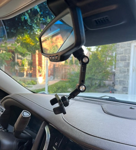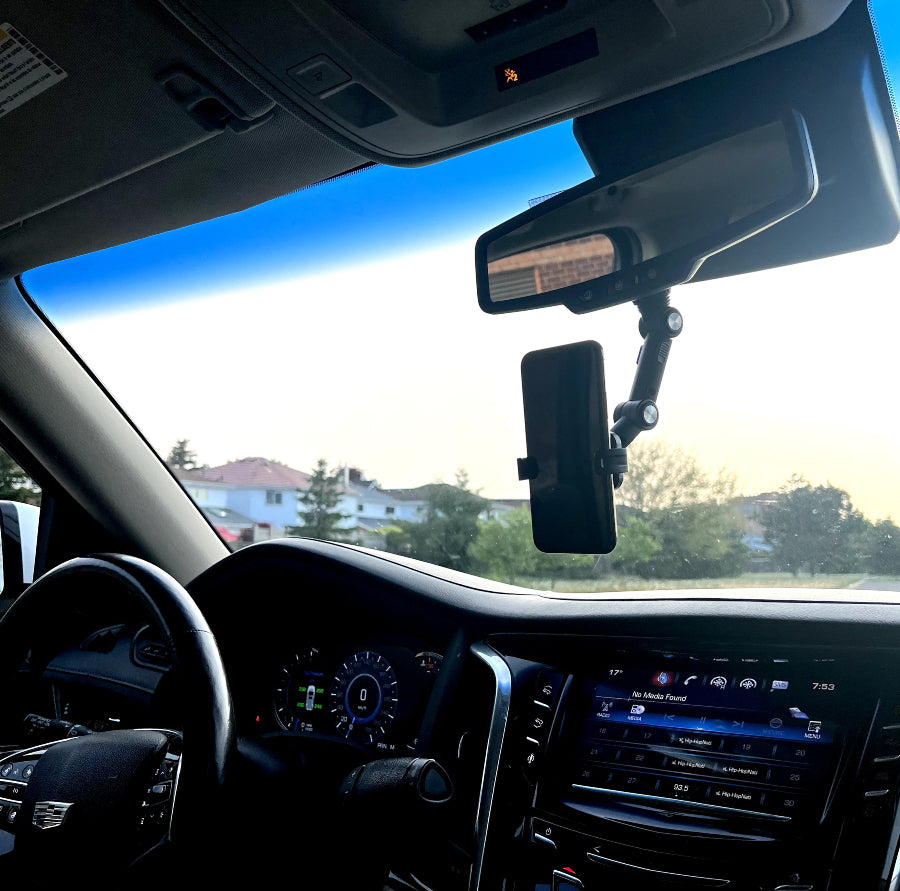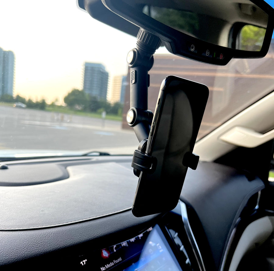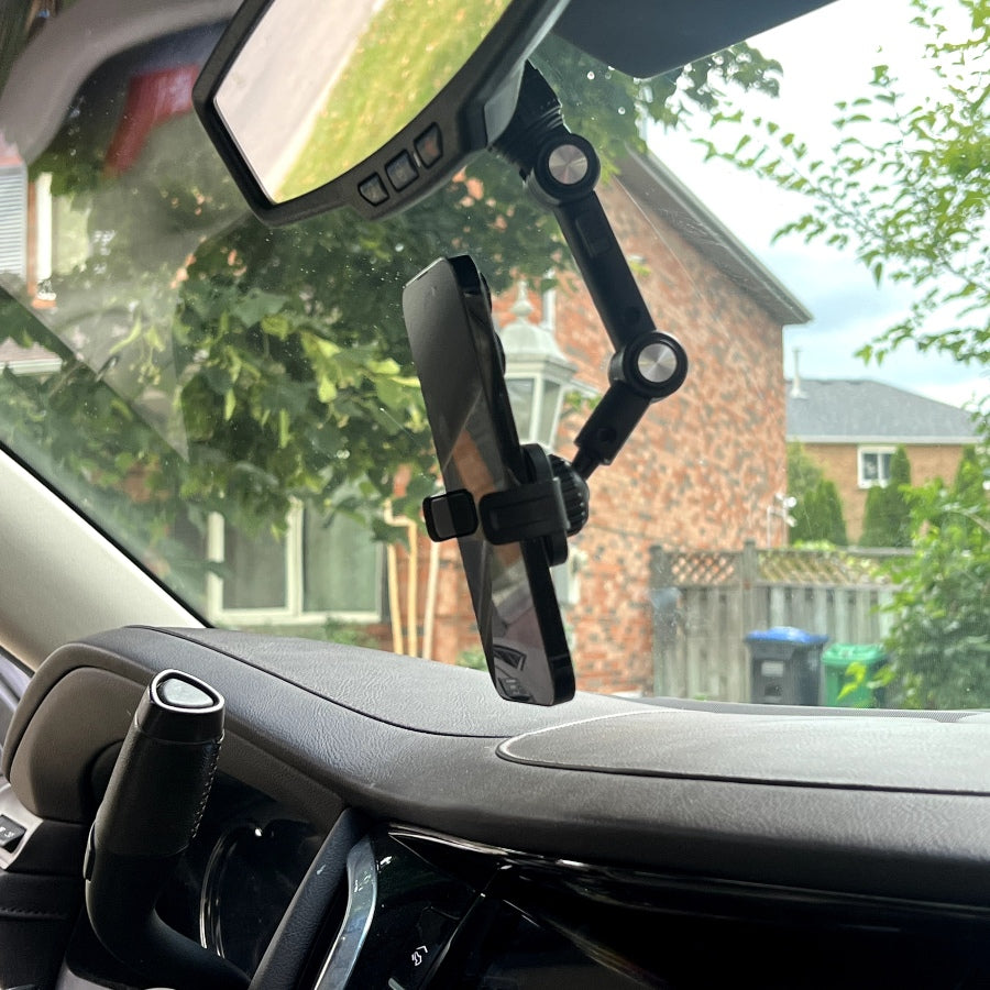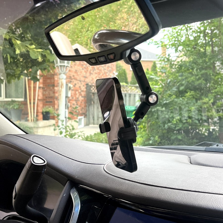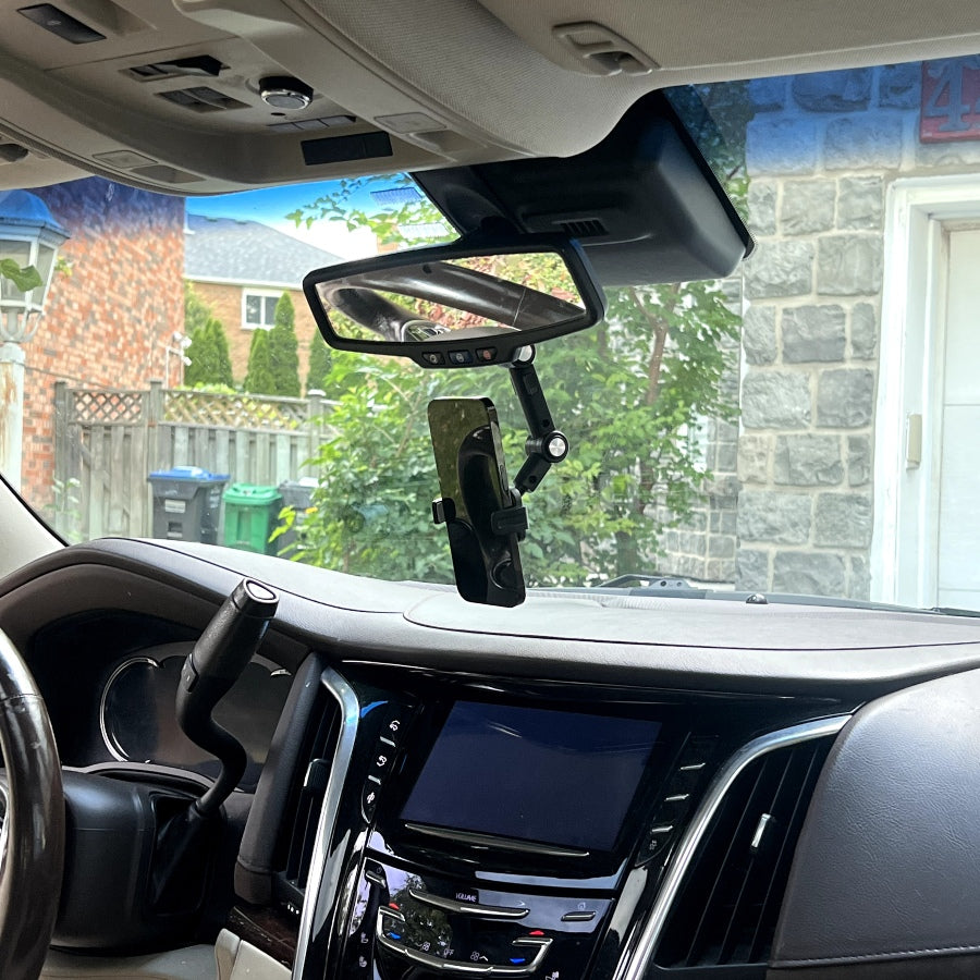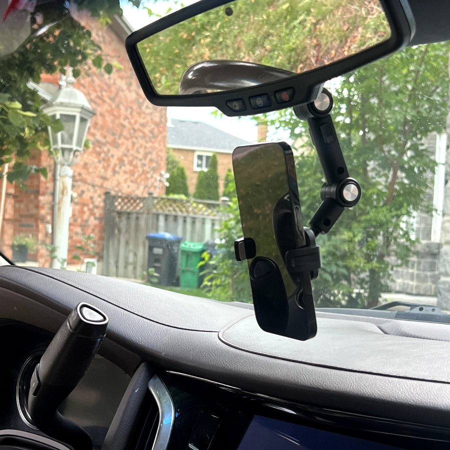 It is simple to adjust and secures phones in the car's rearview mirror or seat location.
