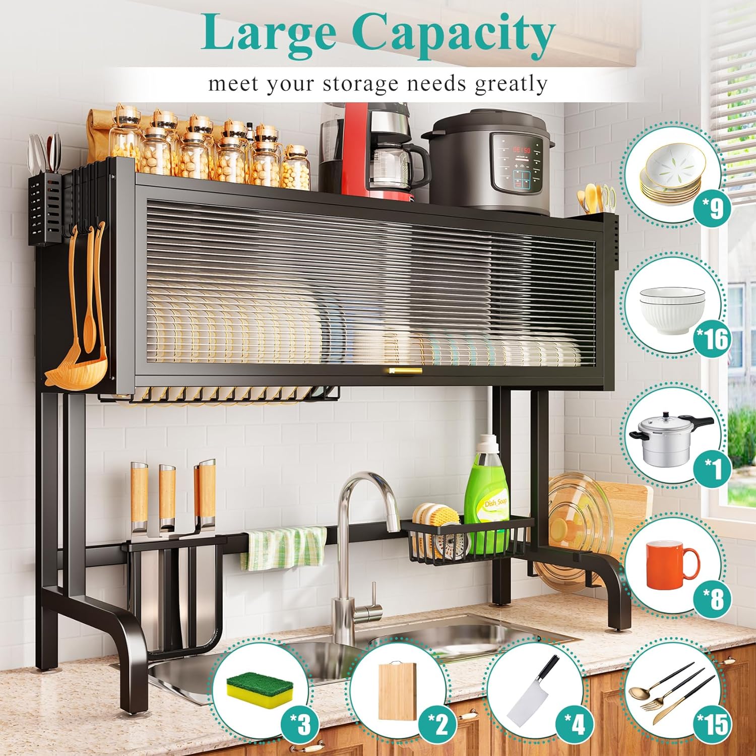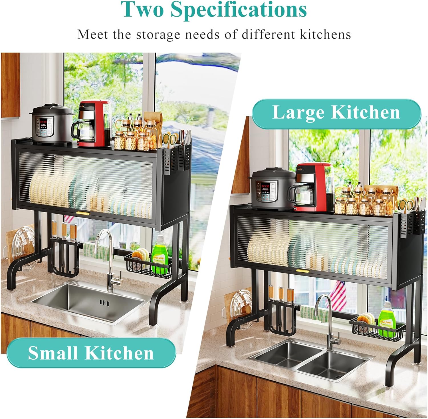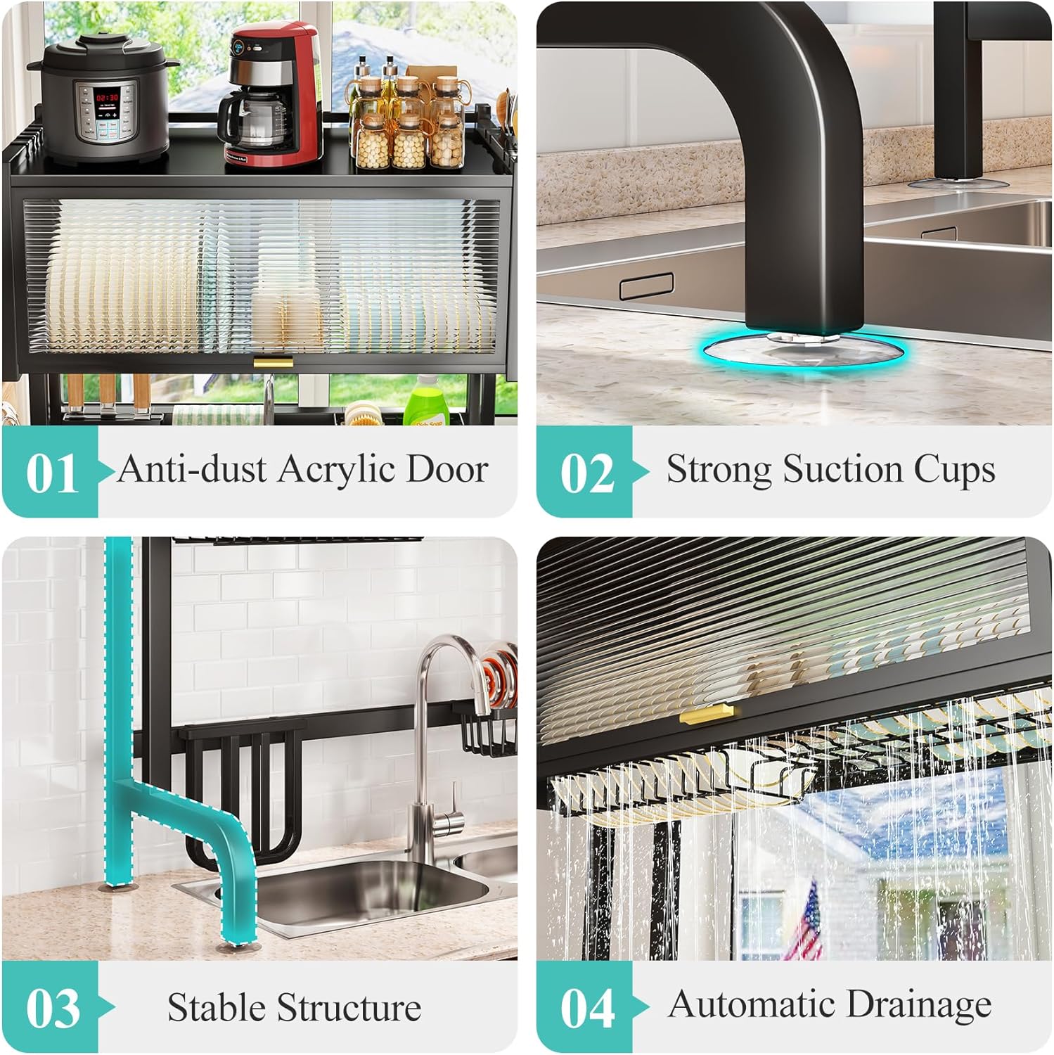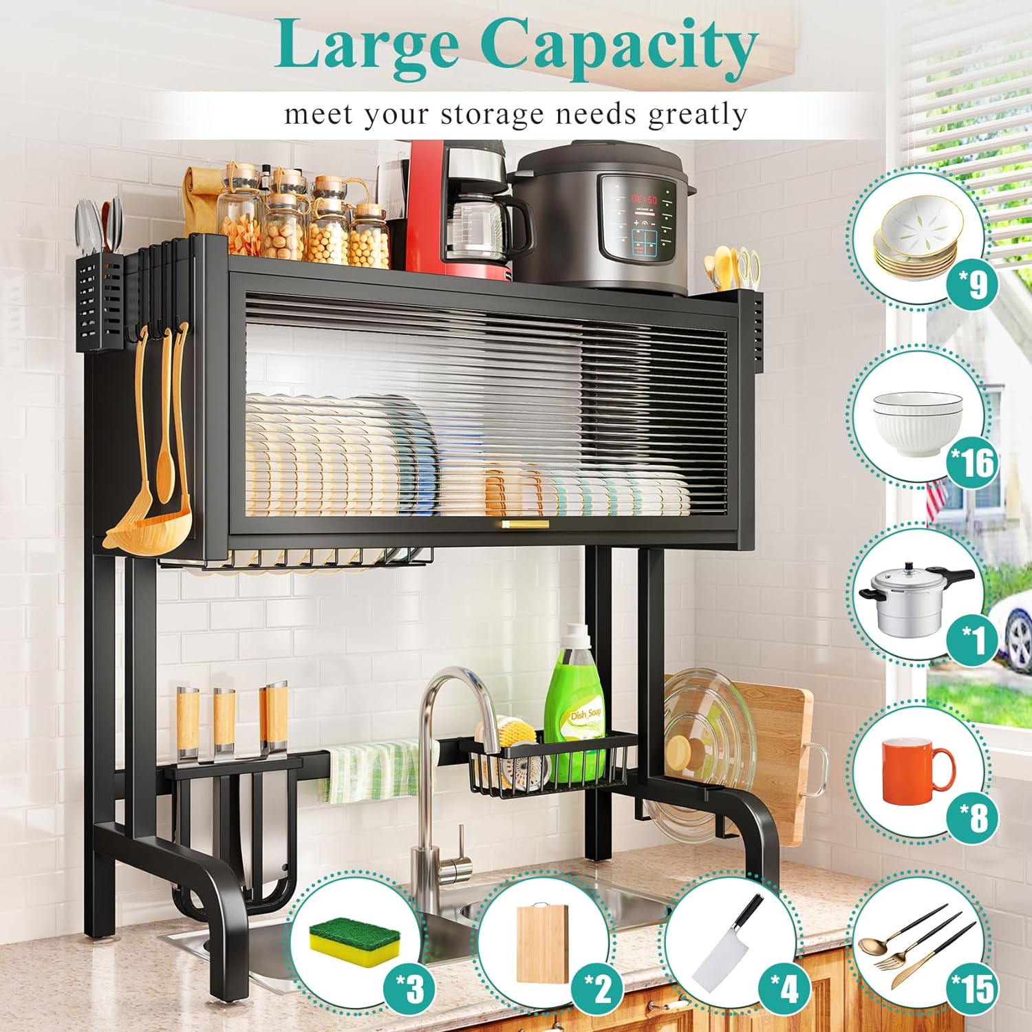 • Convenient Cabinet Door - This over the sink dish drainer drying rack with a practical door not only keeps out the dust but also provides a cover that can prevent the dishes or bowls from falling. There's no doubt that it makes your kitchen tidy and stylish.