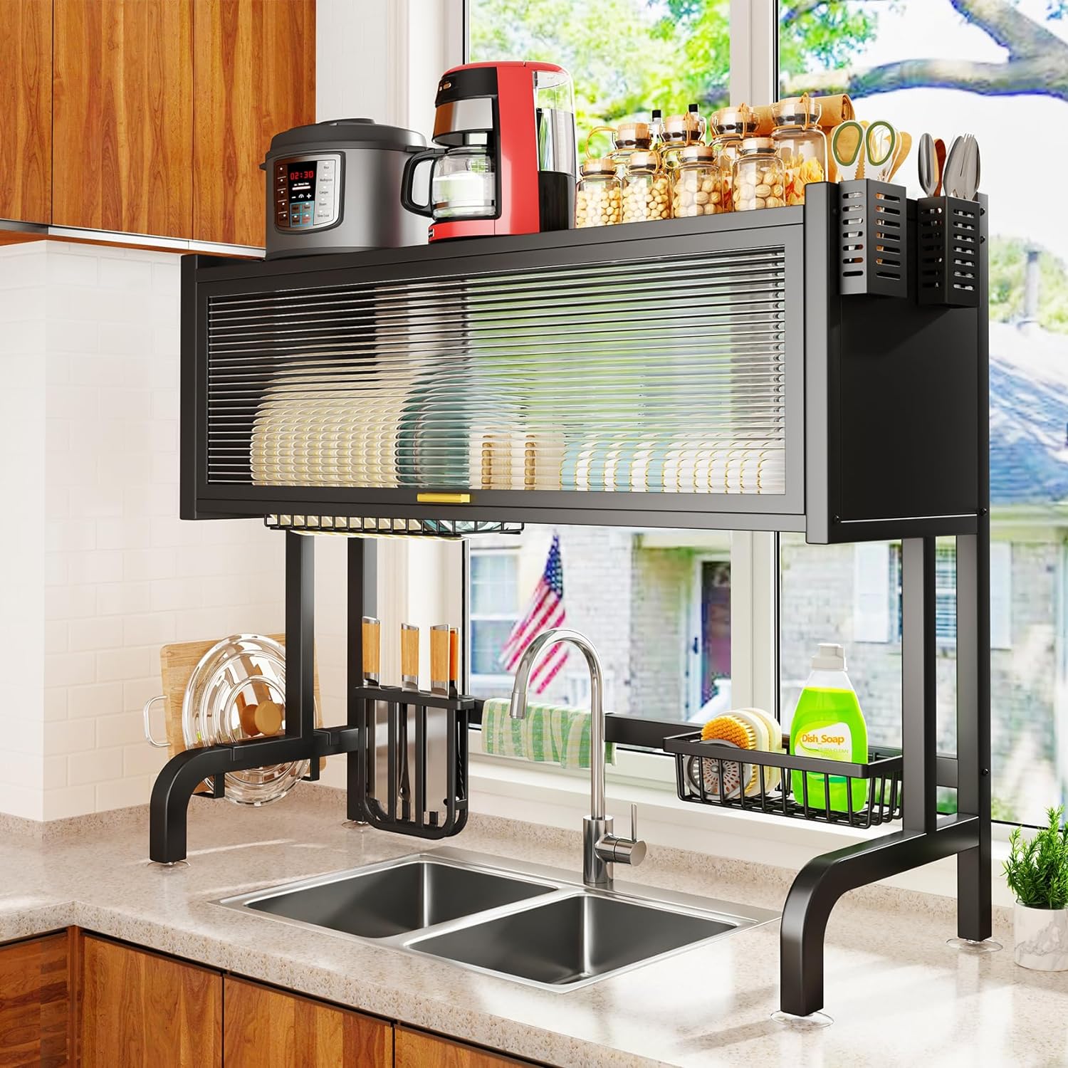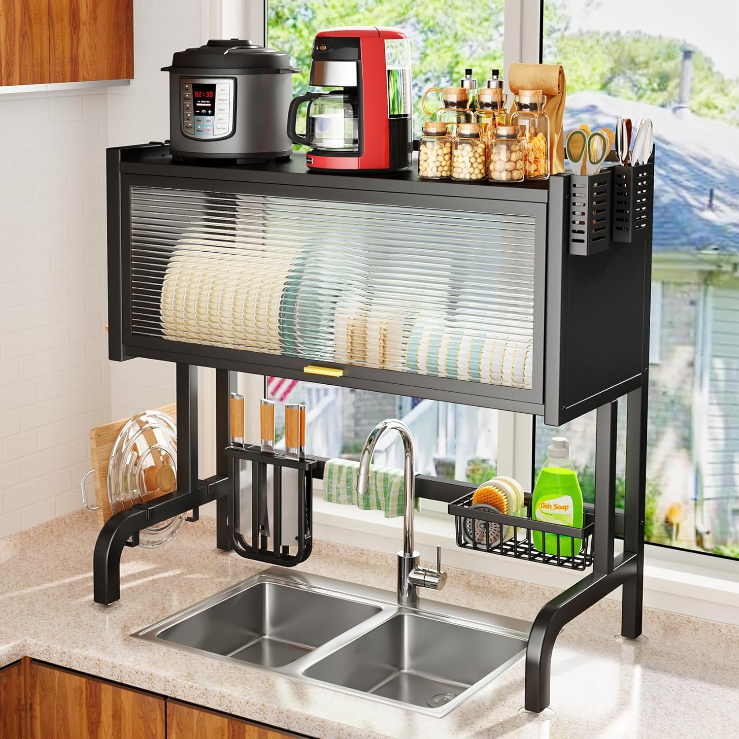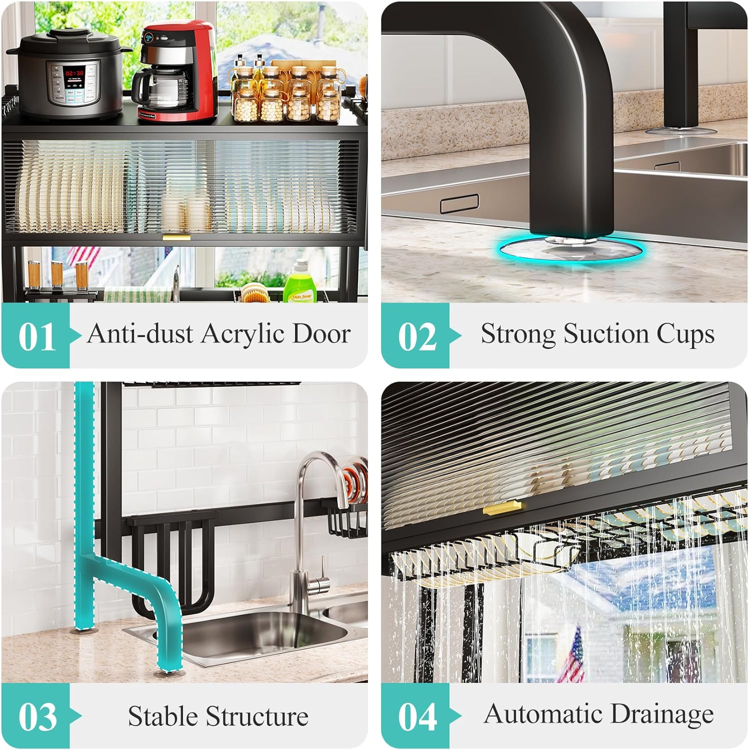 • Convenient Cabinet Door - This over the sink dish drainer drying rack with a practical door not only keeps out the dust but also provides a cover that can prevent the dishes or bowls from falling. There's no doubt that it makes your kitchen tidy and stylish.
