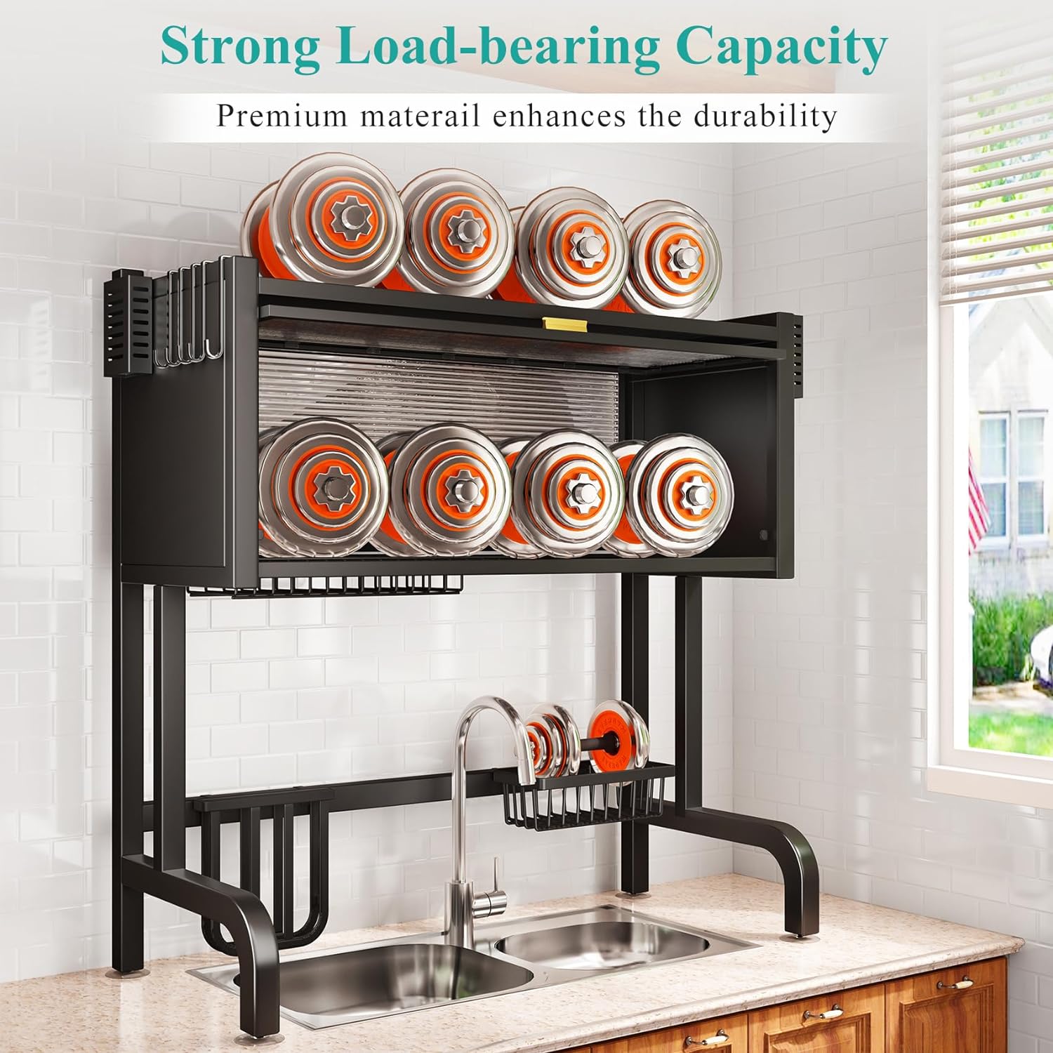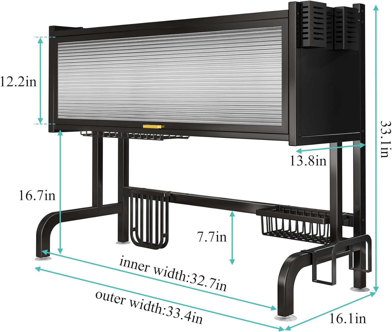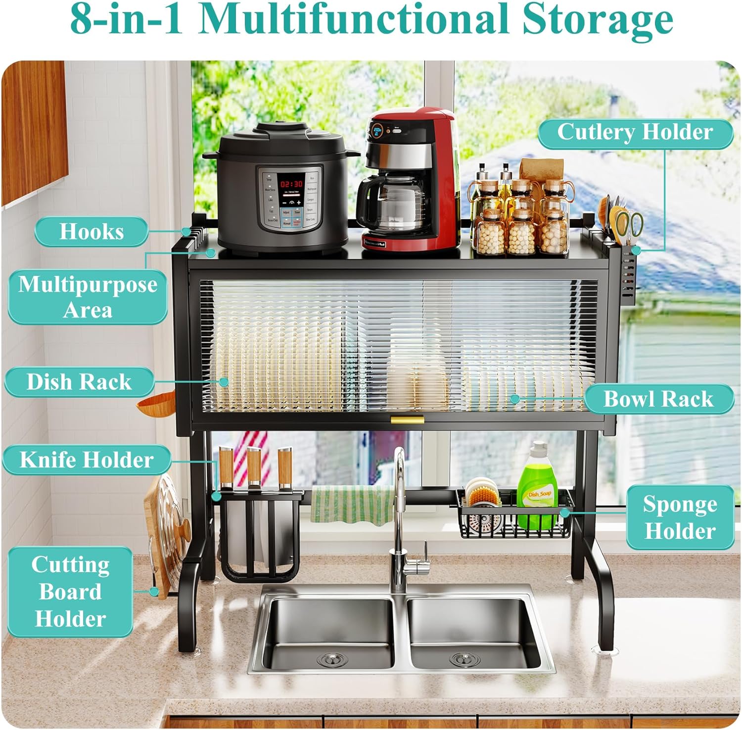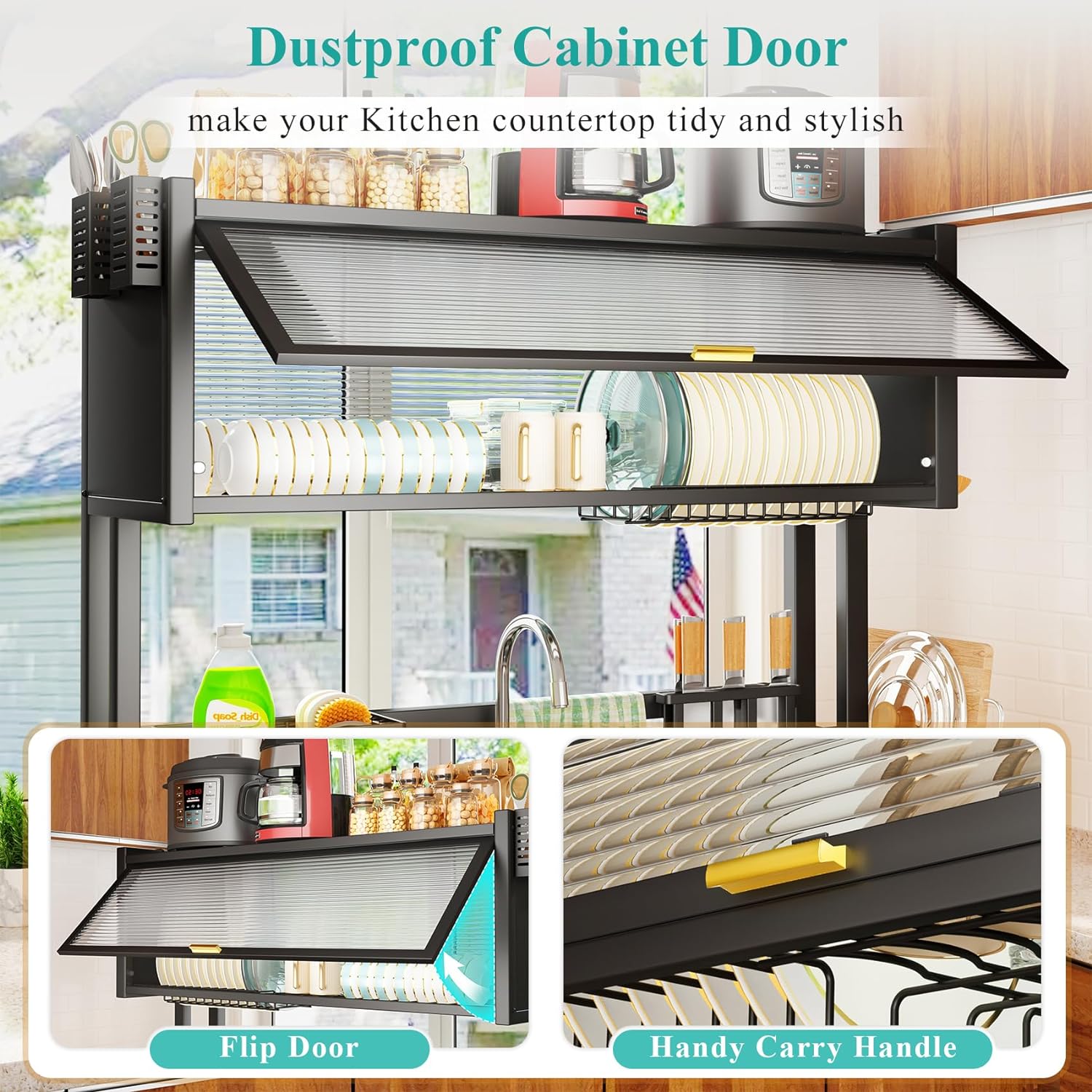 • Convenient Cabinet Door - This over the sink dish drainer drying rack with a practical door not only keeps out the dust but also provides a cover that can prevent the dishes or bowls from falling. There's no doubt that it makes your kitchen tidy and stylish.