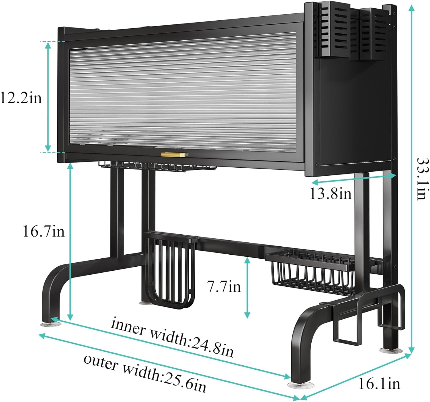 • Over The Sink Dish Drying Rack - Large Dish Drying Rack with Flip Door, Stainless Steel Dish Drainer Kitchen Sink Organizer (Black, 25.6)