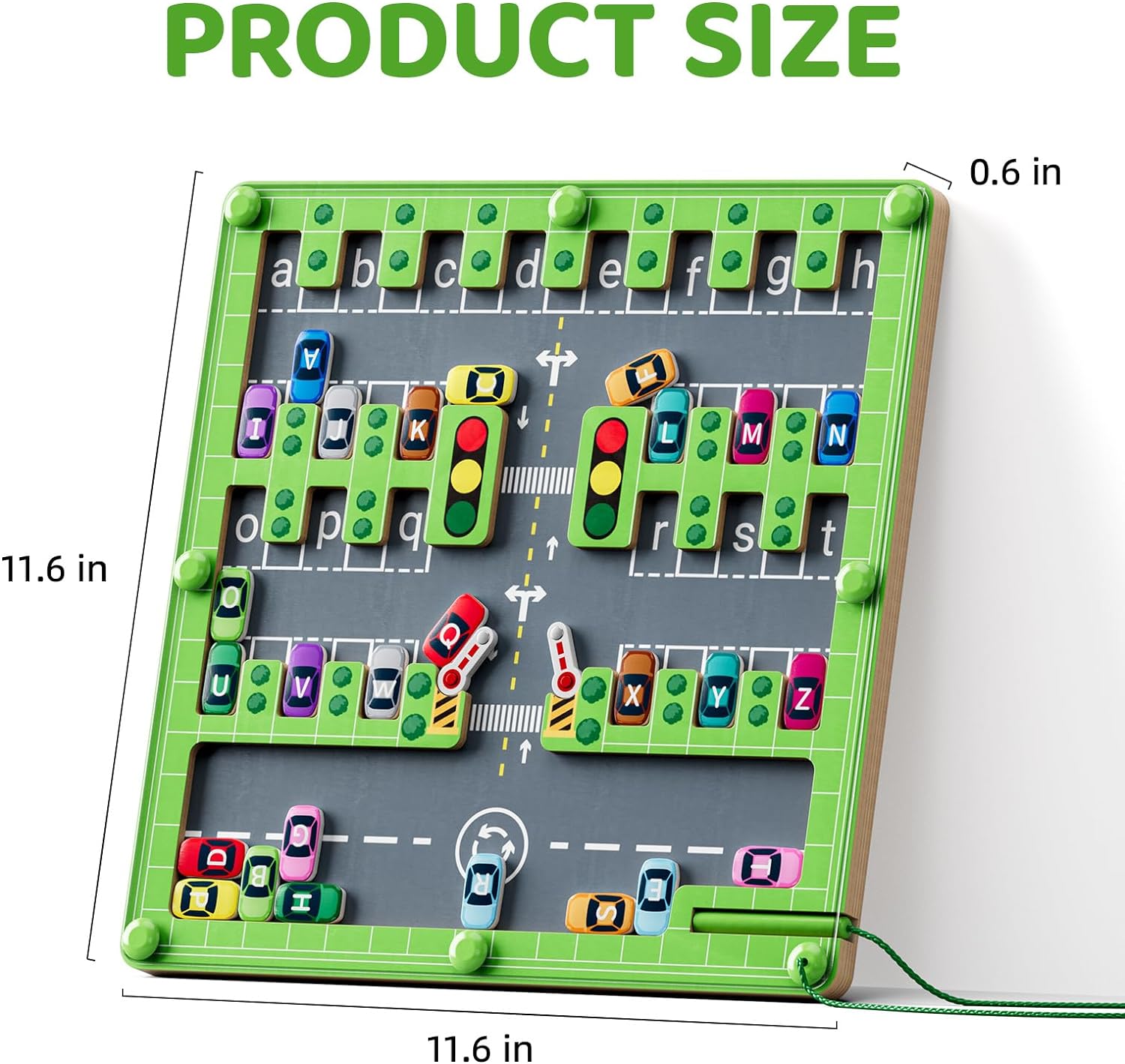 • 🦌【Learning Educational Toys】Magnetic puzzle toys combines elements of letter learning and children’s games. Some parking spaces in the parking lot are marked with different letters, and children need to park their cars in the corresponding spaces based on the letters. This design makes learning fun and motivates children to learn letters.