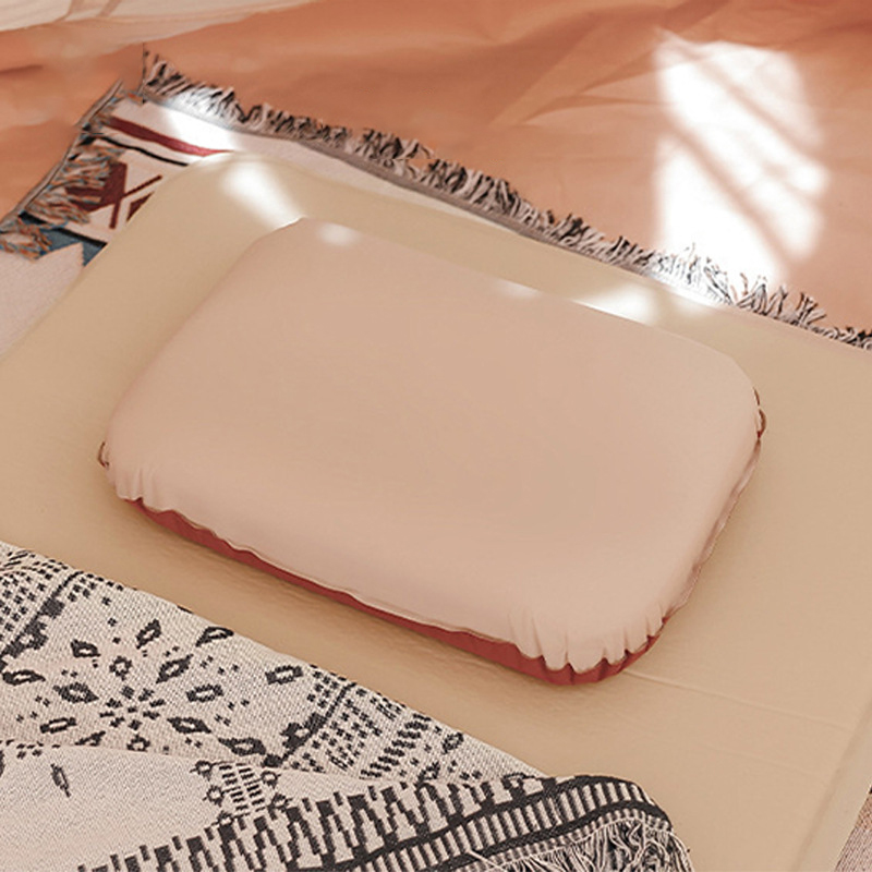 Our camping pillow can be Self-Inflatable, just need to open the inflation valve to automatically pop up, also just need to open the inflation valve to roll up the pillow from the other side You can easily store the pillow, the operation is very simple. Two-layer valve design can effectively prevent air leakage