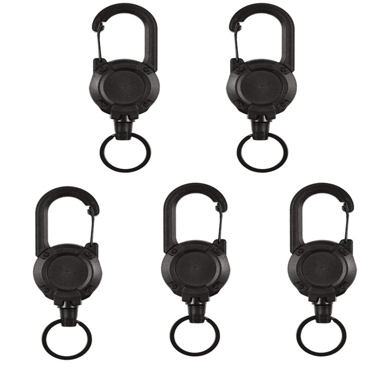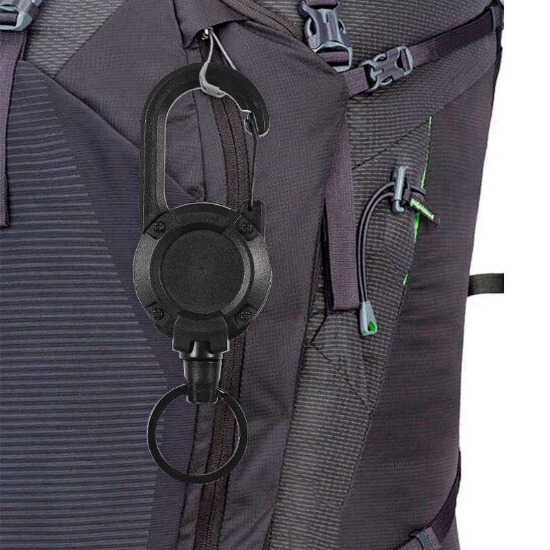 - Sturdy aluminum carabiner with spring-loaded gate quick attach/detach to belt, pocket, strap or loop