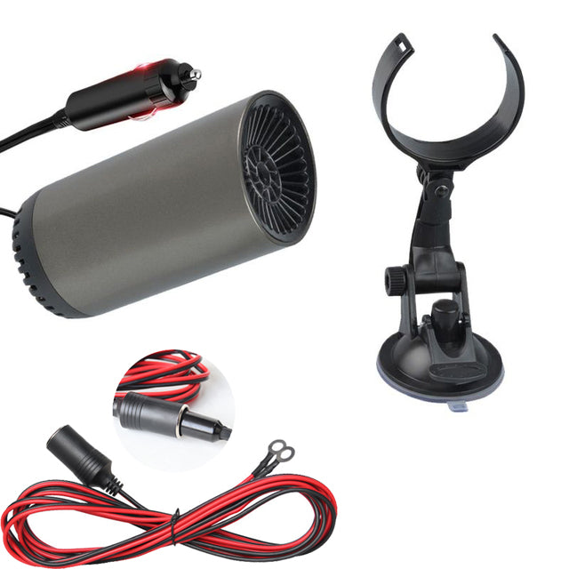 When driving, put it directly on the water cup holder of the car to radiate heat; it can also be fixed on the dashboard to remove the fog and frost on the windshield.