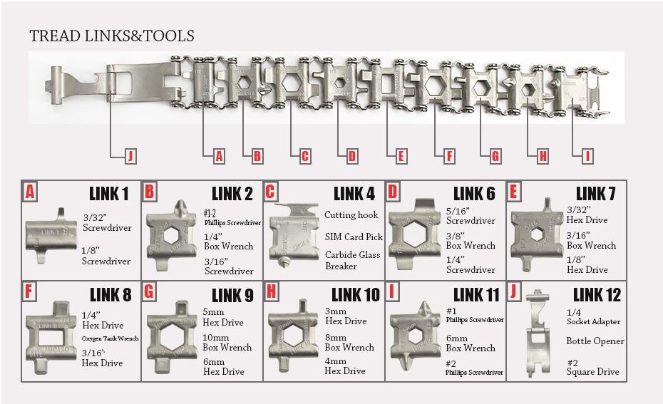 • 29-in-1 Stainless Steel Multi-Functional Bracelet Tools