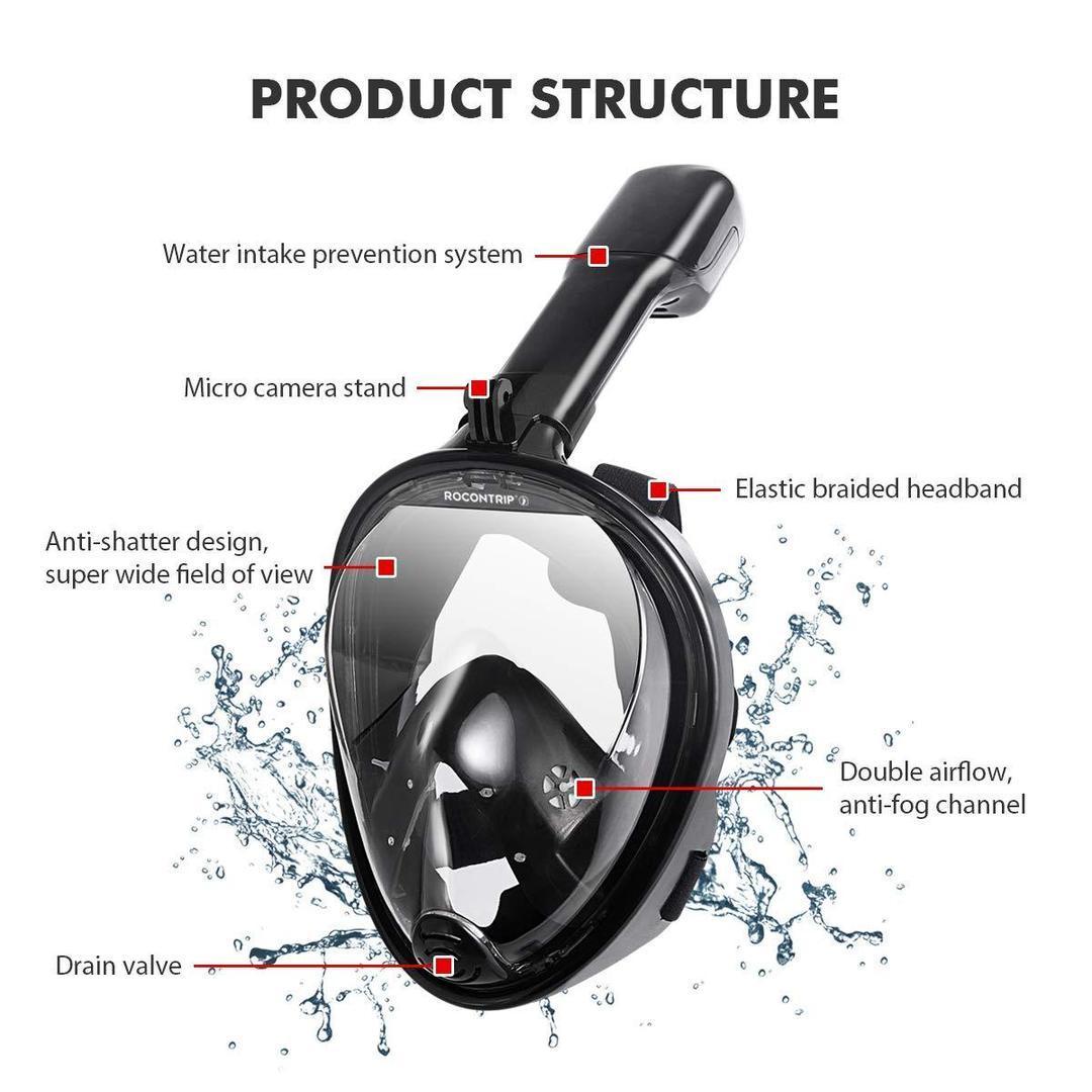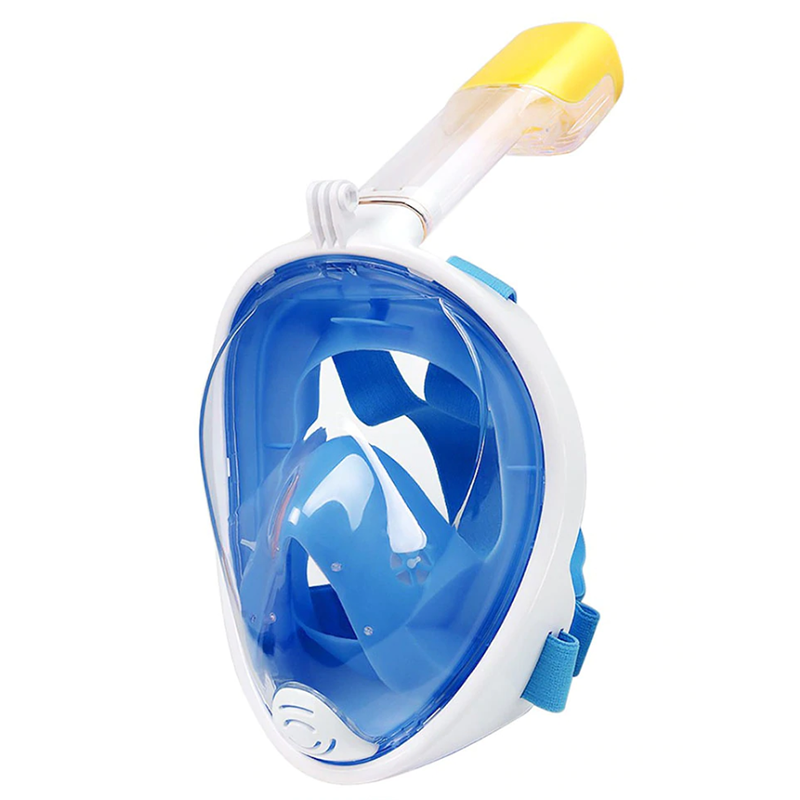 No more struggles of holding the snorkel in your mouth!?This amazing full face snorkel mask allows you to?swim underwater without a mouthpiece or bulky equipment!?All you have to do is slip it on and swim! You'll be able to?see all the?Amazing things that live underwater!