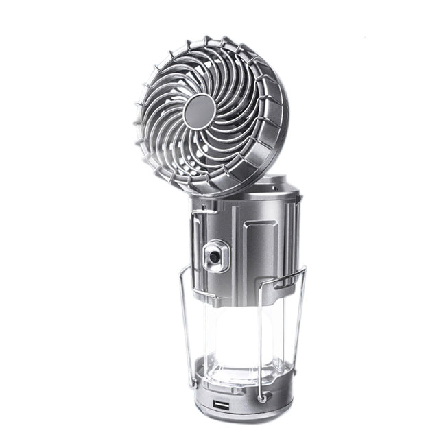 MULTIFUNCTIONAL - Camping lantern and flashlight, fan and power bank for iPhone and Android.
